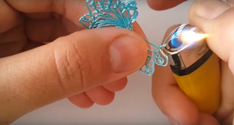 - Corta el hilo casi por el borde y enciéndelo suavemente en la punta para que no se deshile. Alinea bien el cordón. También puedes plancharlo con una plancha. Ten cuidado, si el hilo es sintético, debes planchar el cordón a través de la tela de algodón.