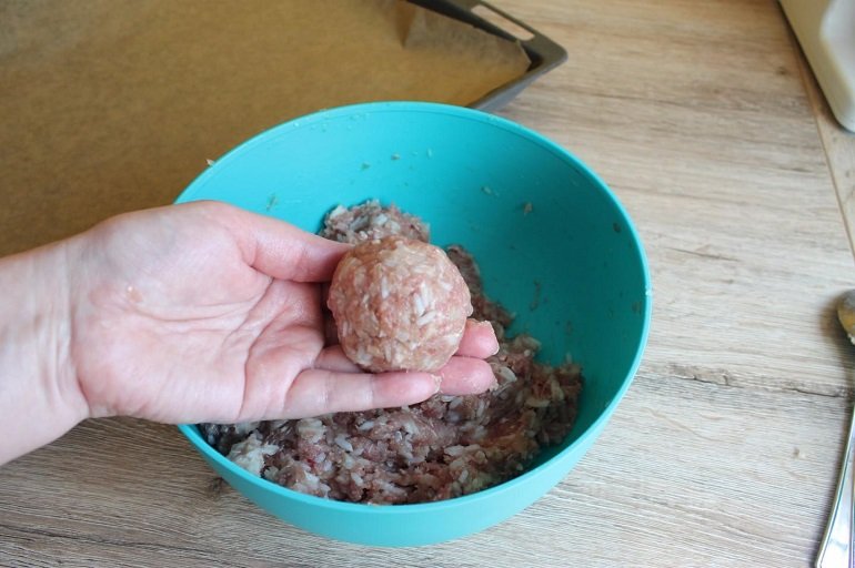 - A la carne picada agrégale la pimienta, la sal, las verduras fritas y el arroz. Al final, crea bolas pequeñas con la masa.