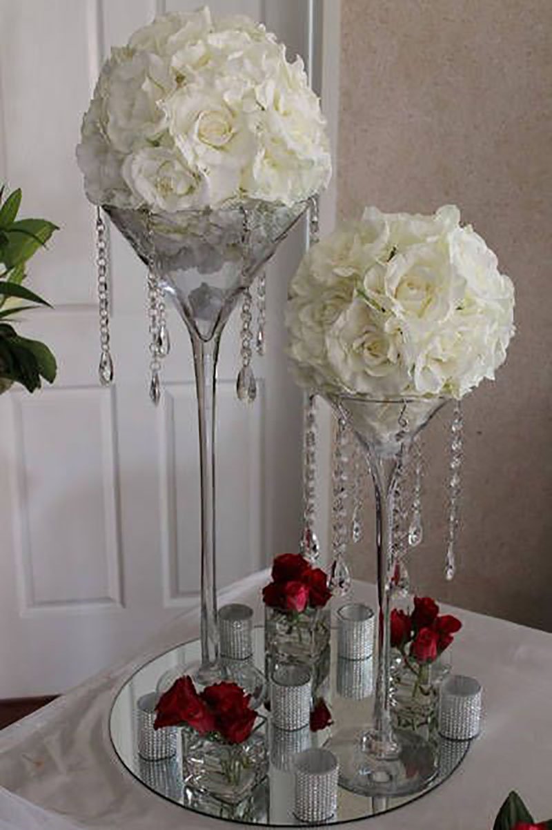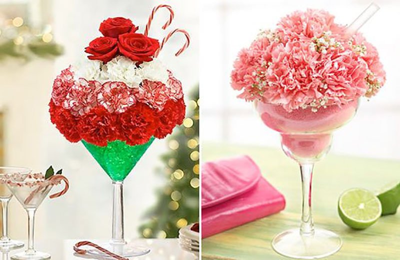 Una variante muy interesante del arreglo floral en una gigantesca copa de martini.