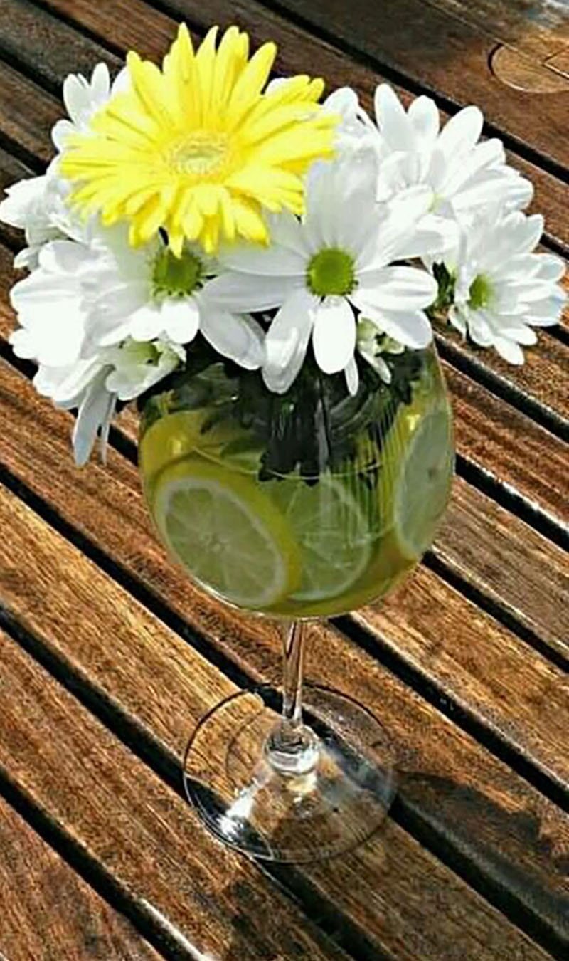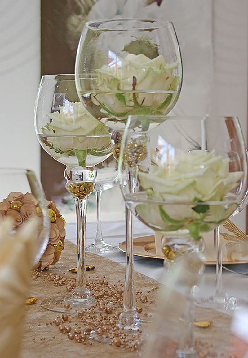 ¿Qué te parece esta variante? La copa actúa como un jarrón y un candelabro.