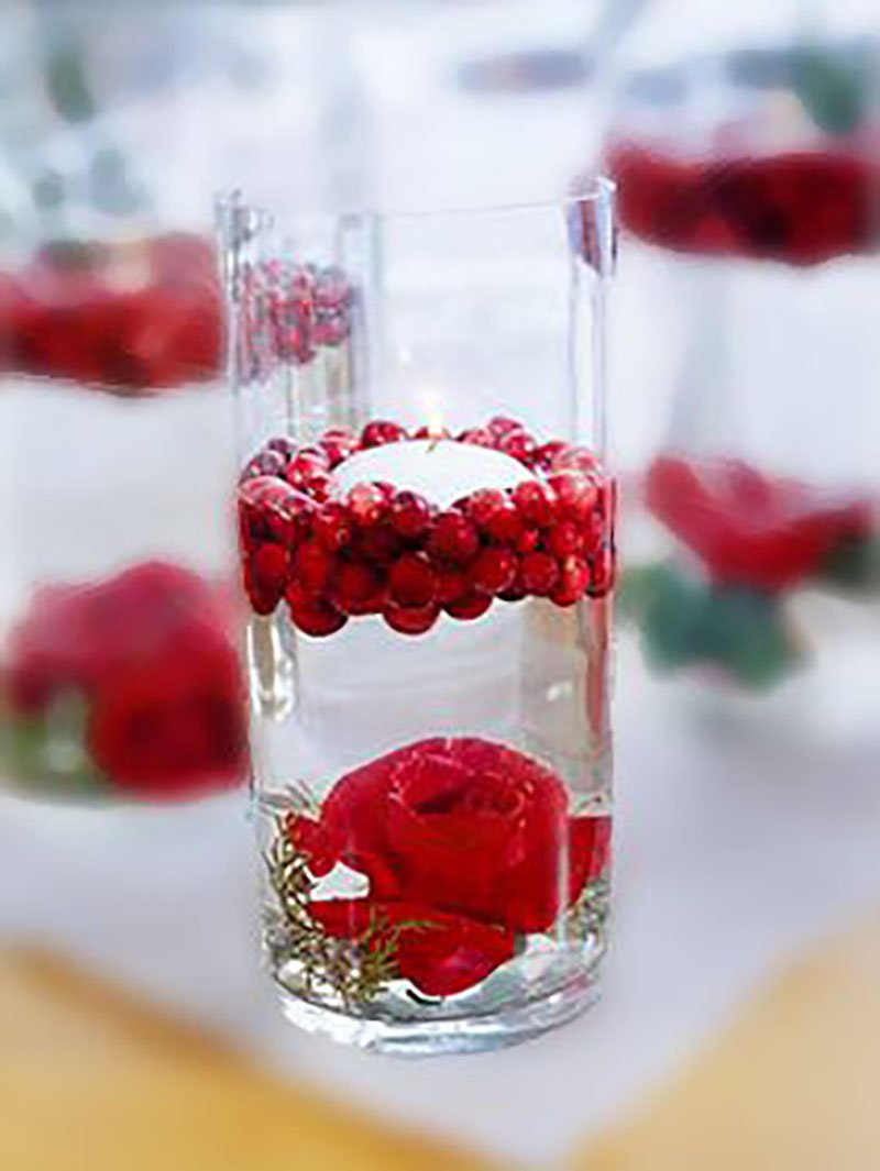 Otra manera más de crear una decoración, que complementa perfectamente el interior. Es fácil hacerla con manos propias. Puedes usar flores, frutas y una copa de vidrio.