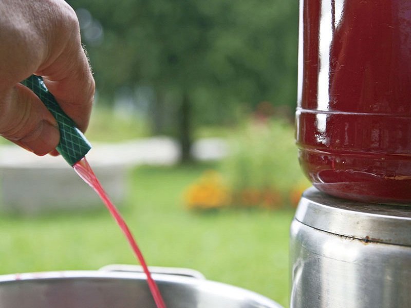 - El periodo de fermentación es de 2 semanas. Cada 3 días prueba el mosto. Si está demasiado agrio, añade azúcar (70 g por litro). Hazlo hasta que consigas el sabor adecuado.