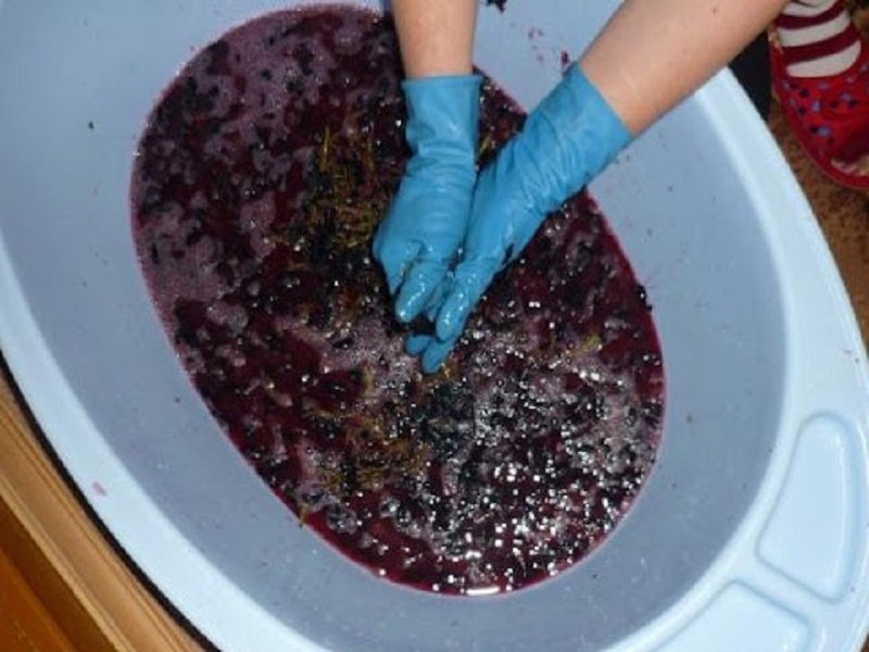 - Antes que nada, retira todas las uvas podridas, los restos y las ramitas. Aplasta bien las uvas con las manos o utiliza una empacadora. Vierte la masa en un recipiente, llenándolo hasta ¾ de su capacidad. Cubre el puré con un paño limpio y déjalo en un lugar cálido durante 4 días. Déjalo fermentar. Remueve 2 veces al día con una cuchara de plástico.