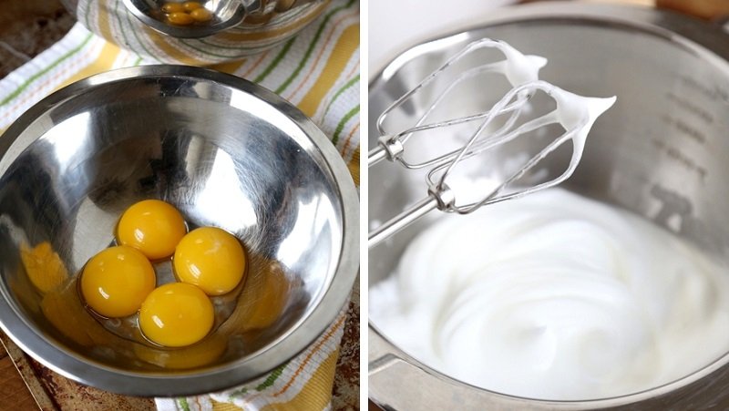 - Agrega una pizca de sal a las claras, y bátelas hasta obtener una espuma firme. Después, cubre la bandeja para hornear con pergamino y úntalo con la mantequilla.