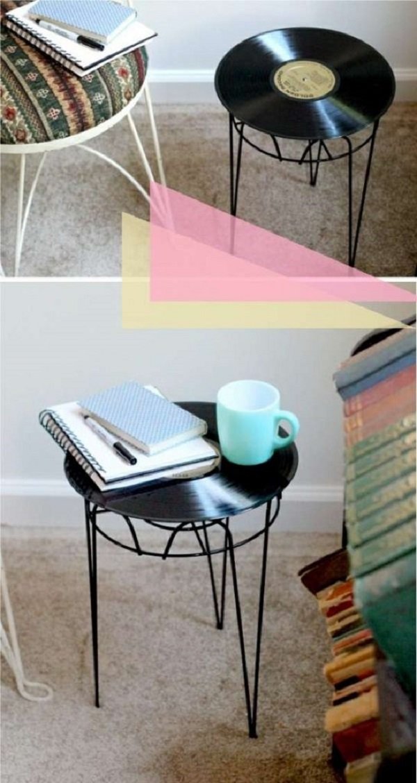 ¡Posavasos a partir de discos de vinilo! Simplemente corta el disco de vinilo en partes, y ya está. ¡Luce muy interesante! Para que los bordes de los posavasos no sean afilados, puedes derretirlos un poco sobre el fuego.