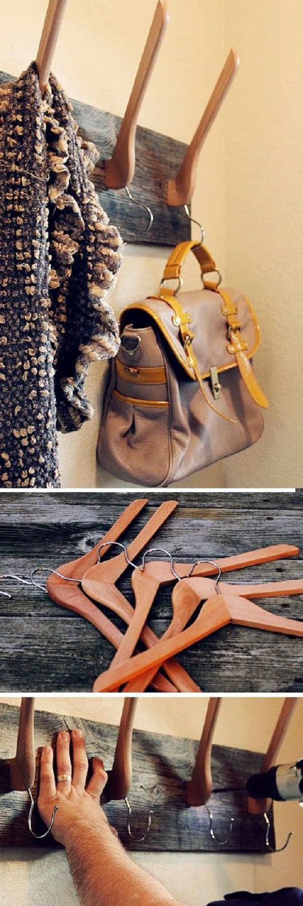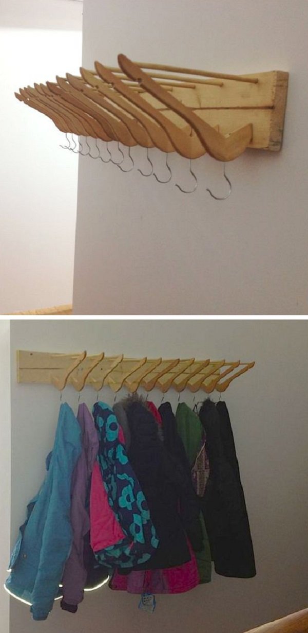 ¡Una idea estupenda de cómo aprovechar las perchas! Las perchas de madera se me rompen con mucha frecuencia, y esta es una manera ideal para utilizarlas…