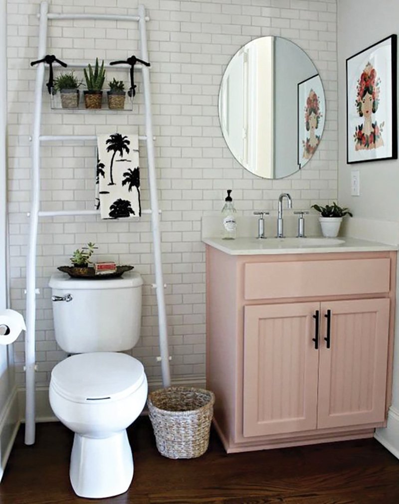 - Si tienes alguna escalera en desuso o escalera de tijera en casa, no te apresures a botarla. Servirá maravillosamente como soporte de toallas. La escalera ocupa poco espacio y puede ser instalada en cualquier lugar.