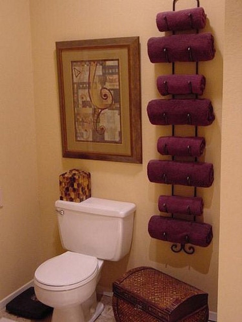- Los bastidores de vino pueden ser utilizados para colgar las toallas.