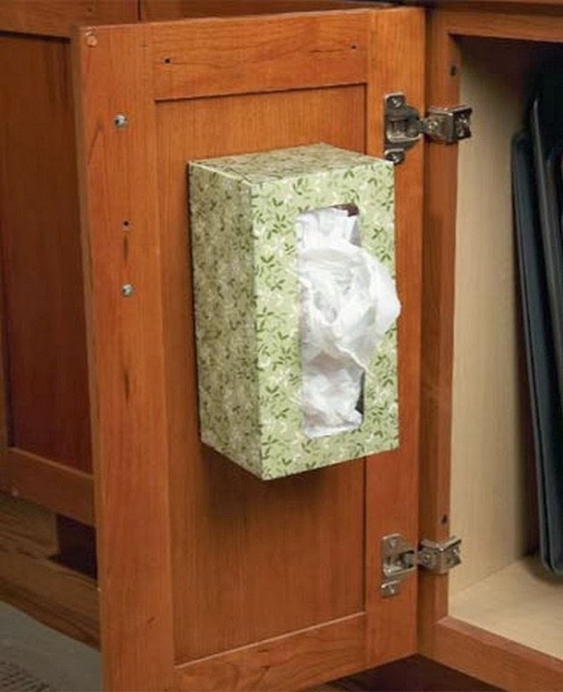 - Para que las bolsas de plástico estén siempre a mano, utiliza la caja de servilletas de papel.
