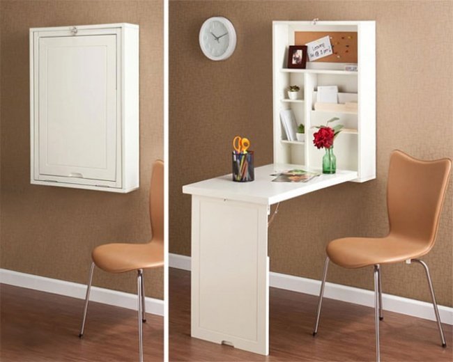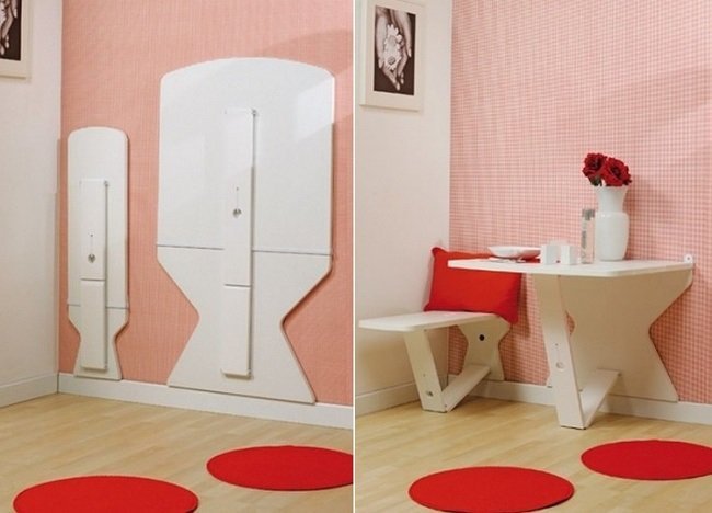 Doblar la mesa solo cuando sea necesario, es la regla principal. El resto del tiempo no ocupará espacio adicional, a la vez que actúa como un elemento interesante de la decoración. Puedes montarla con tus propias manos, mira qué sencillo.