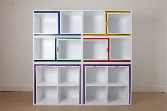 Estas sencillas cajas, decoradas con llamativos dibujos y decoupage, pueden almacenar todo lo que se necesita, cumpliendo las funciones de los estantes.