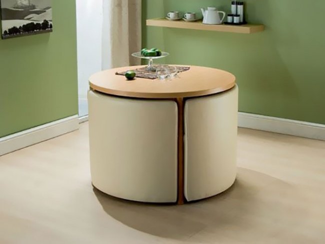 Este mueble puede convertirse instantáneamente en una mesa y suaves taburetes. El diseño sorprenderá a tus invitados y organizará todo de la mejor manera.