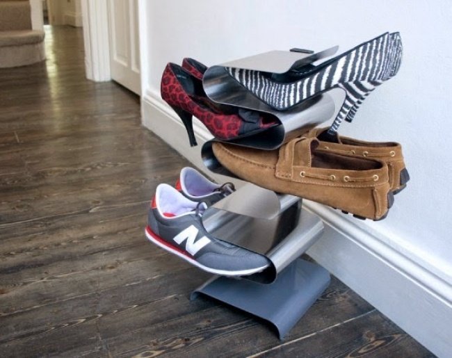 ¡Esto es un verdadero sueño! Un estante así de maravilloso no solo ahorra espacio, sino también permite crear composiciones impresionantes a partir de tus zapatos favoritos. Mantén los zapatos tan prácticos y en un solo lugar.