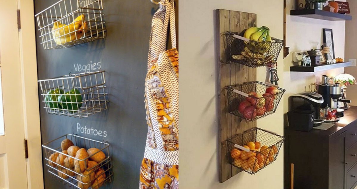 Estos productos ocupan mucho espacio. Esto es especialmente cierto en cocinas pequeñas, donde cada centímetro vale su peso en oro. ¿Por qué apilar frutas en la mesa cuando puedes ponerlas en prácticas cestas de pared? El sencillo accesorio puede agregar un toque elegante a tu decoración.