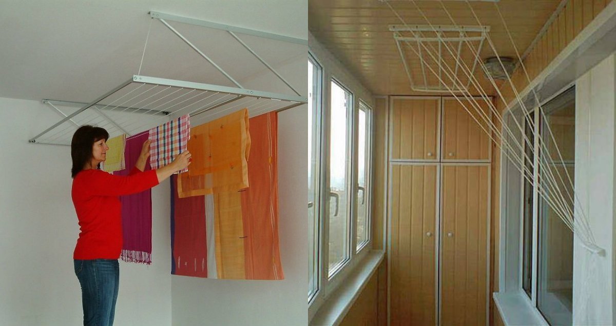 Las secadoras de ropa plegables no son nada nuevo. Pero, ¿qué tal si colocas una estructura conveniente debajo del techo, para no chocar con ella cada vez que pasas? También puedes colocar una secadora similar en el balcón; hay cientos de opciones.