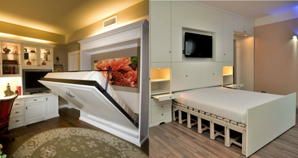 Una gran solución para ahorrar mucho espacio en la habitación. ¡Y la cama secreta se ve realmente elegante!