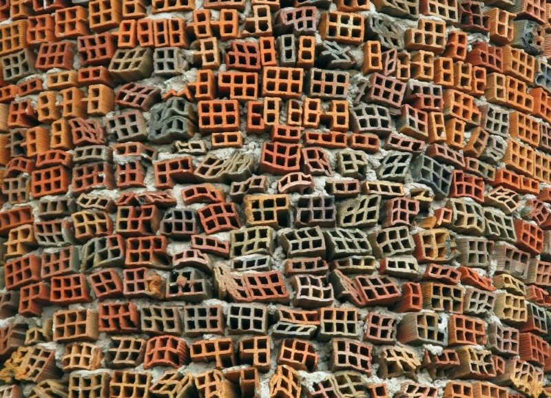 15. Pared de ladrillo de una catedral en Madrid, España.