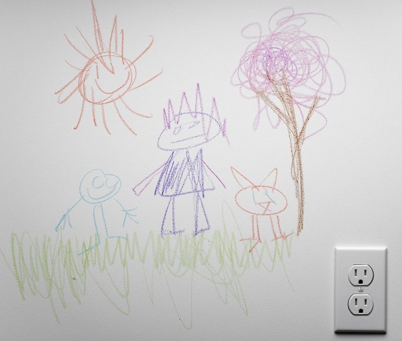 Pasa un paño humedecido con una solución de soda y agua tibia sobre los juguetes. ¡Problema resuelto! - Dibujos en las paredes