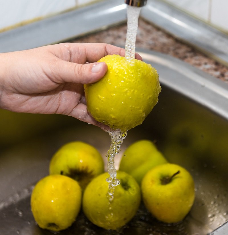 Para eliminar los depósitos de cera de los alimentos comprados, lávalos en una solución tibia de bicarbonato de sodio. - Todas las superficies de cocina