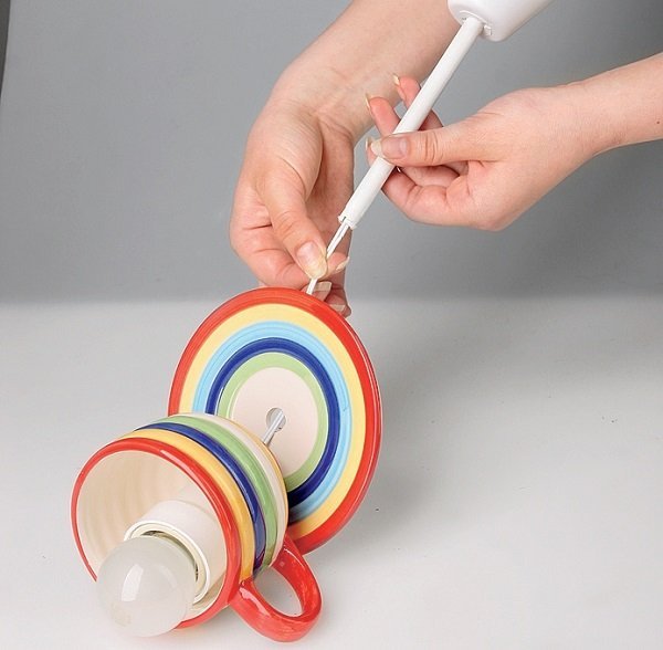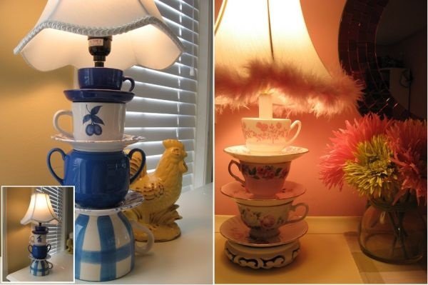 - ¡Las tazas viejas son excelentes plafones! Mira este diagrama de ensamblaje.