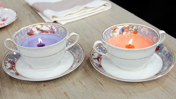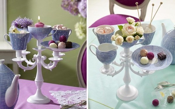 - Y qué tal esta composición de candelabros y juegos de té: un jarrón original para dulces.