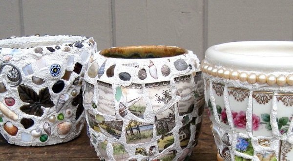 - Jarrones para mermelada con restos de vajillas antiguas de lujo.
