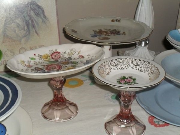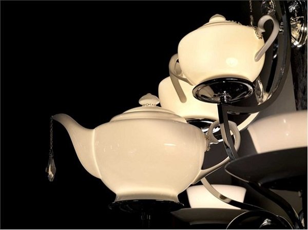 - Y qué tal esta composición de candelabros y juegos de té: un jarrón original para dulces.