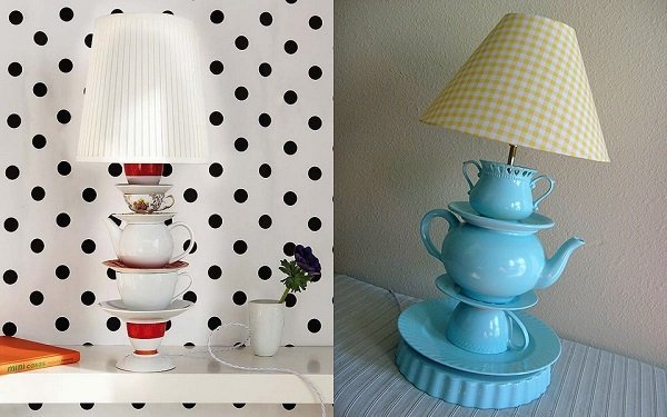 - ¡Las tazas viejas son excelentes plafones! Mira este diagrama de ensamblaje.