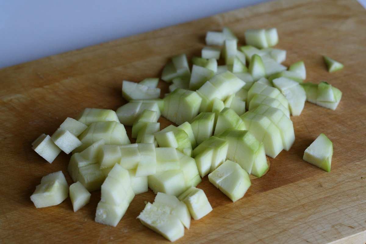 - Corta los calabacines en rodajas y ponlos en una cacerola.