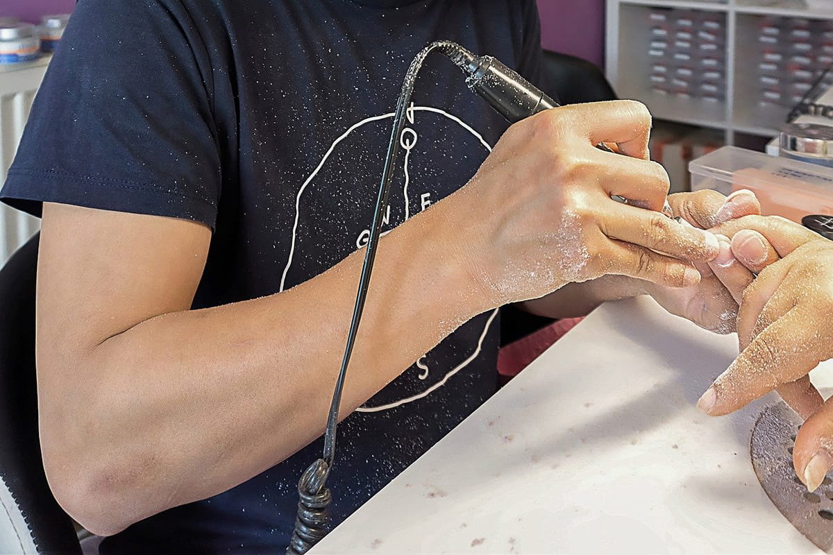 - Trabajar con las uñas implica un contacto constante con el polvo y la suciedad. Las aspiradoras y campanas de manicura especiales no pueden recoger todo el polvo. Por lo tanto, este se asentará sobre los objetos y se esparcirá por toda la habitación.