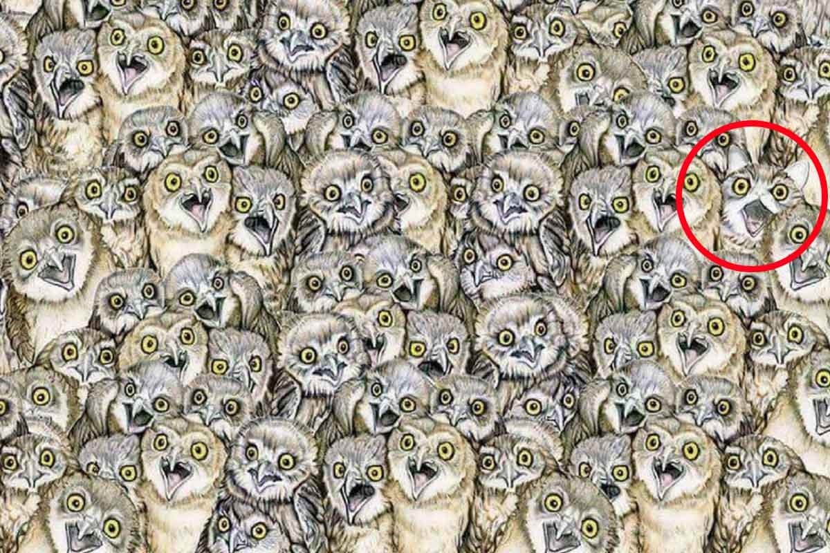 - En la solución de la primera tarea tendrán una ligera ventaja los amantes de los gatos. Después de todo, nadie mejor que ellos para encontrar un ronroneo entre otros animales a gran velocidad. Pero en serio, todo el mundo tiene las mismas posibilidades. Todo lo que tienes que hacer es tratar de encontrar el gato entre los búhos lo más rápido posible. ¿Podrás hacerlo?