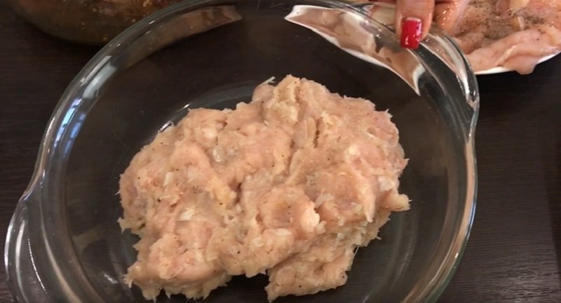 Es necesario moler la pechuga de pollo y hacer carne picada para las albóndigas. Más adelante, se puede cocinar sopa vegetal con albóndigas.
