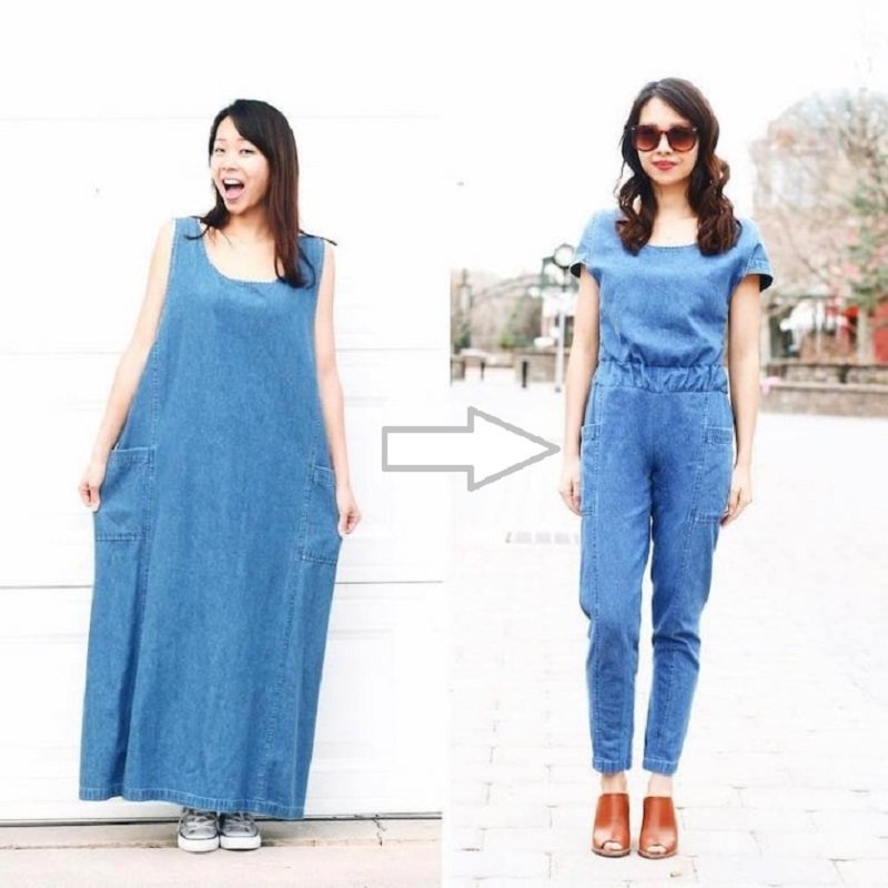 - De un sarafan de mezclilla tan grande, se puede crear cualquier cosa. Tuve que inventar bastante para crear un peto de moda.