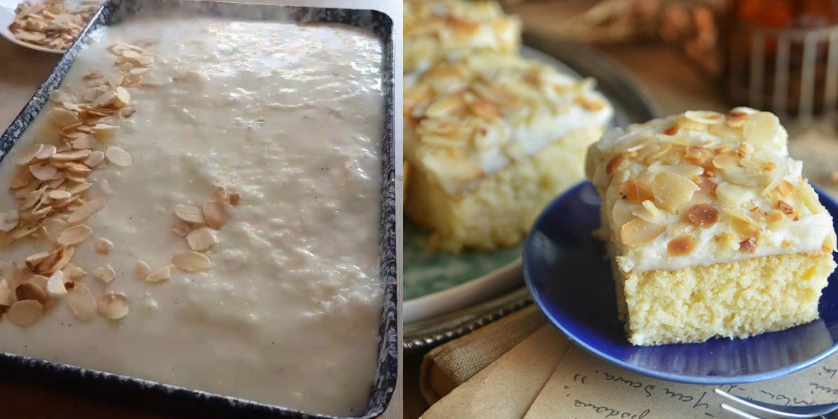 - Al final, vierte la crema caliente sobre un pastel húmedo y deja que se enfríe. En una sartén seca, fríe los pétalos de almendras hasta obtener un color marrón claro, y espolvoréalos sobre un pastel.