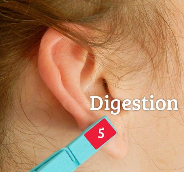 Aplicar el masaje en el quinto punto, ayudará a deshacerte de sensaciones desagradables en el estómago o incluso un ligero dolor en el tracto digestivo.