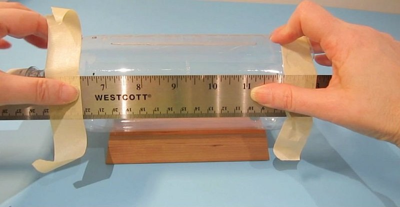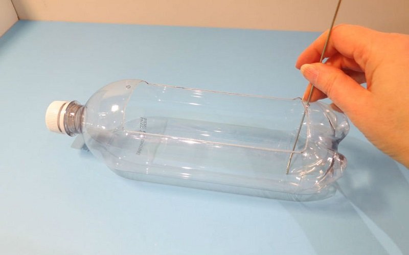 - Corta un rectángulo en el costado de la botella de plástico. El corte no debe ser demasiado profundo.