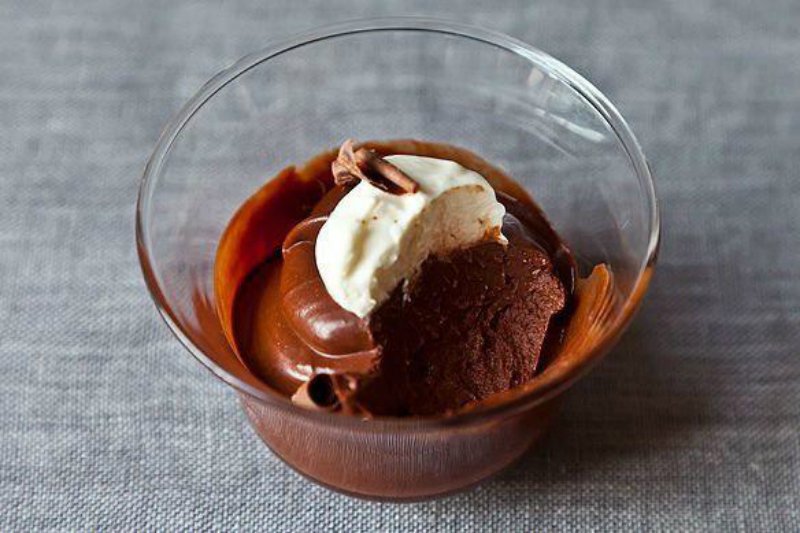 Derrite 200 g de chocolate negro en un tazón, agregando 160 ml de agua. Luego, bate la masa con una batidora hasta que brille. Para darle sabor, puedes gotear un poco de brandy.