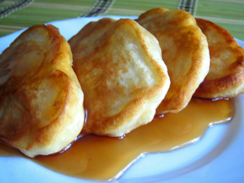 Por la noche, ralla 1 manzana, agrégale 1–2 cucharadas de azúcar, 50 ml de yogurt (cuajada, leche horneada fermentada), una pizca de sal, soda en la punta de un cuchillo y unas cucharadas de harina. Revuélvelo todo y refrigera tapado. Por la mañana, sin remover, echa varias cucharadas separadas de esta masa en una sartén calentada con aceite de girasol. Y fríe hasta que se doren.