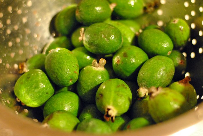 No todos aprecian el sabor de la gruesa piel de la baya de la feijoa, no obstante, es muy fragante y contiene muchos compuestos fenólicos-antioxidantes, que tienen propiedades anti-cancerígenas. ¡Así que no tires este tesoro a la basura! Si no lo deseas consumir, no importa… Puedes secarlo y añadirlo al té.