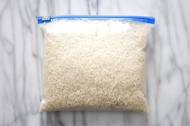 Echa arroz en un recipiente transparente y ponlo de forma vertical – es todo lo que necesitas para crear un práctico soporte para cuchillos. El arroz absorbe perfectamente la humedad, y almacenados de esta forma, no se oxidan y no pierden el filo, como sucede en ocasiones con los soportes de madera.