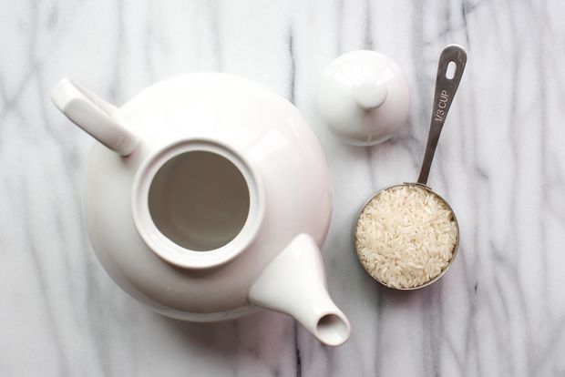 ¡Lavar bien una tetera con un pico estrecho no es una tarea fácil! Es bueno que existe este simple recurso.Le echas a la tetera una cucharada de arroz, le añades unas gotas de detergente y un poco de agua caliente. Cierra la tapa y la abertura de la boquilla – con un dedo. Agita el agua con el arroz en una olla durante 1 minuto. ¡Después de este procedimiento, las manchas del té desaparecerán por completo!