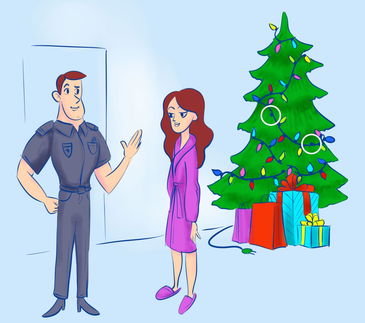 ¿Cómo supo el policía que el hombre le mintió? Esto se nota en la guirnalda en el árbol: dos bombillas claramente no son suficientes, por lo que no podría brillar tan intensamente como le dijo al policía.