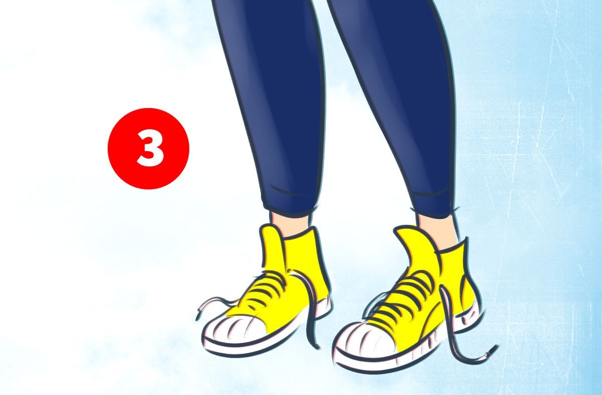 Respuesta correcta: una niña con cordones desatados. Dado que está embarazada, le resulta difícil alcanzar sus zapatillas de deporte para atarse los cordones.