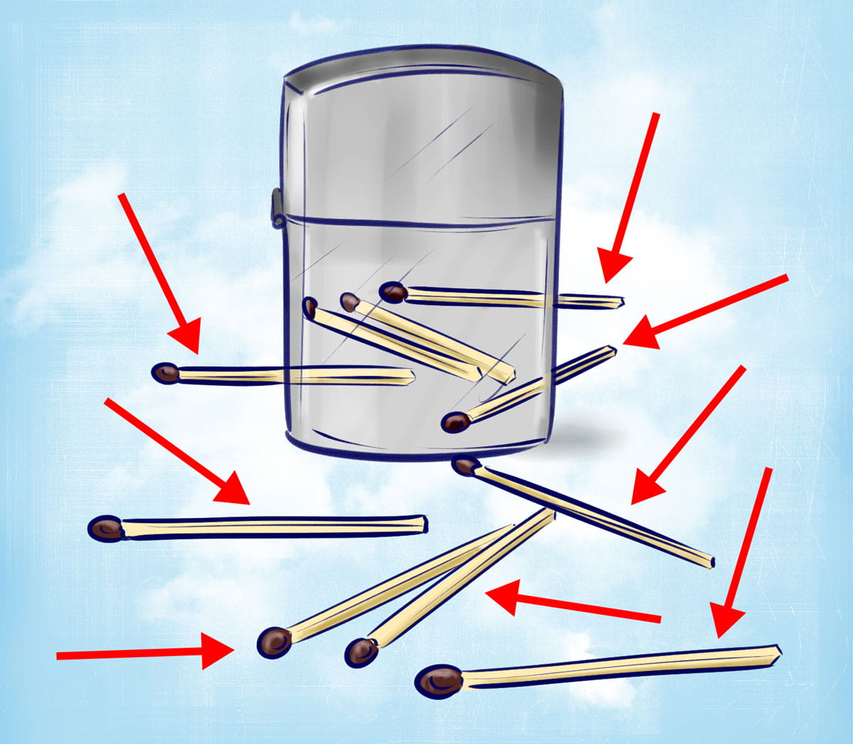 ¿Qué es más conveniente de usar: fósforos o un encendedor? Todos tienen su propia respuesta a esta pregunta. En esta imagen, alguien tiene coincidencias dispersas: cuenta su número exacto. El resultado, como en los acertijos anteriores, estará disponible al final del artículo.
