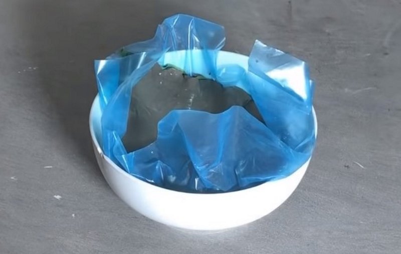 - Ahora, coloca la película con la hoja en una gran capacidad, para que se doble, y deja solidificar.