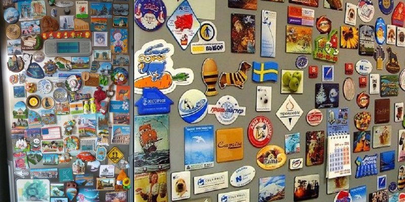 No hay nada de malo en coleccionar imanes de viaje. Pero, ¿por qué colocar imanes con logotipos de empresas y anuncios junto a ellos? ¡Estos no son recuerdos, sino puro mal gusto!