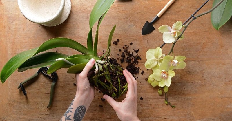 Después de la poda, planta la orquídea en un nuevo sustrato. Lee sobre cómo hacer esto correctamente en nuestro artículo. Sigue los enlaces.