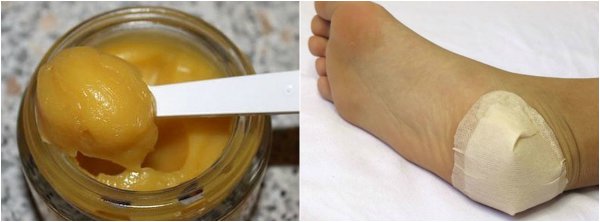Antes de ir a la cama, mantén los pies al baño de vapor con sal y, luego, sécalos. Unta las áreas que necesitan el tratamiento, con el ungüento preparado. Pon sobre los pies unas bolsas de plástico y, encima de ellas, los calcetines. Ahora puedes irte a la cama.