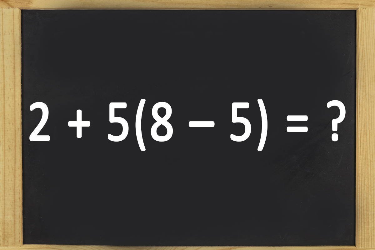 - En primer lugar, debes resolver las acciones entre paréntesis, luego multiplicar y solo al final realizar la suma. Por lo tanto, la solución es 2 + 5 (8 – 5) = 2 + 5 × 3= 2 + 15= 17. Como puedes ver, cualquiera que recuerde las reglas de la escuela puede resolver el ejemplo.