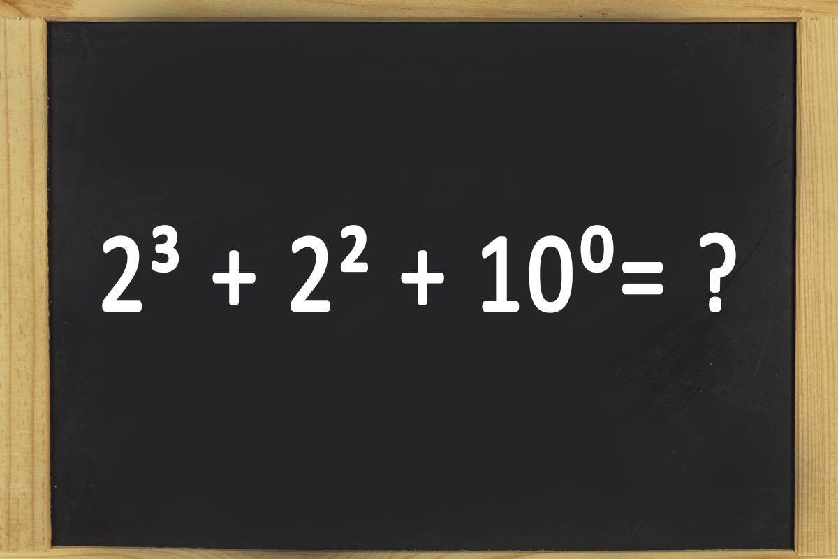 - Aquí, todos pueden recordar fácilmente que 2³ = 2 × 2 × 2 = 8 y 2² = 2 × 2 = 4. Pero, ¿cuántas personas recuerdan que cualquier número elevado a cero es igual a uno? En este caso, obtenemos 8 + 4 + 1 = 13.